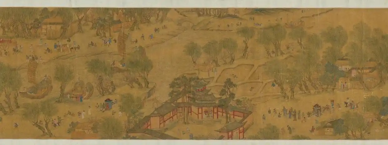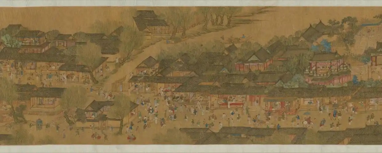 田玉彬认为,无论采用哪种理解,这幅画确实展现了大量与清明相关的民俗活动。首先看人物衣着。画中有人穿着厚重冬装,但多是从北方来或往北方去,而大多数人已换上轻薄的春衫,与清明前后的气候特点相符。更直接的证据是踏青习俗。画卷开篇,一队人马从城郊往城里走,队伍中一顶轿子格外特别——轿顶插着杨柳杂花。这一细节在《东京梦华录》中有明确记载:“轿子即以杨柳杂花装簇顶上,四垂遮映。”这正是北宋清明节踏青习俗的真实写照。此外,汴河码头附近有一家“纸马”店铺,祭祀用品摆到门前垒得老高,对应清明祭祖扫墓的时令。还有一个容易被忽略的细节:返程队伍经过一段土墙时,墙头冒出两个看热闹的小孩;远处农家院子里,立着一架秋千——秋千正是寒食清明的标志性符号。历史上,关于张择端创作《清明上河图》的具体年代以及“上河”一词的涵义一直存在争议。在明代资料中,这幅画不仅拥有宋徽宗的瘦金体题签和双龙小印,还附有宋徽宗的题诗,其中“水在上河春”一句更是明确指出了画卷的春天背景。因此,多位近代美术史家如郑振铎、徐邦达、张安治等均主张“春景”之说。然而,开封市教师孔宪易先生在1981年《美术》杂志第二期上发表的《清明上河图的“清明”质疑》一文,认为《清明上河图》所绘的是秋景,他列举了八项理由,其中之一便是画卷右首所描绘的驮负10篓木炭的驴子。据北宋孟元老所著的《东京梦华录》记载,每年农历十月,汴京便开始“进暖炉炭,帏前皆置酒作暖会”。若说清明节前后便进暖炉炭,显然与宋人的生活习俗不符。孟元老与张择端同为北宋人,《东京梦华录》作为研究北宋汴梁风土民俗的重要资料,其所述史事应具有较高的可信度。